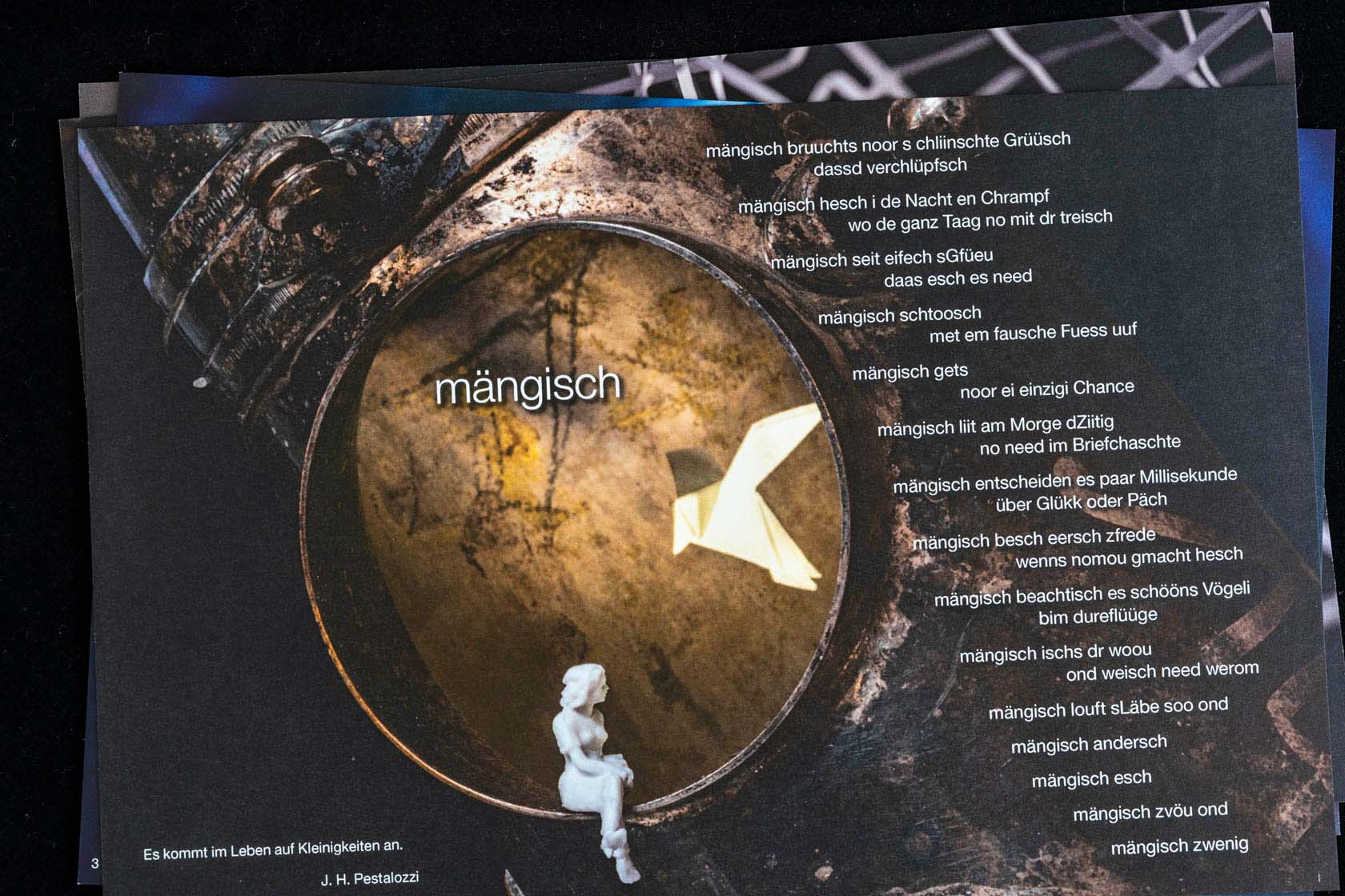 Die Texte von Erich Haller inspirierten mich zu Fotos und umgekehrt. Am Ende habe ich für jede der 40 Geschichten ein passendes Layout gestaltet.