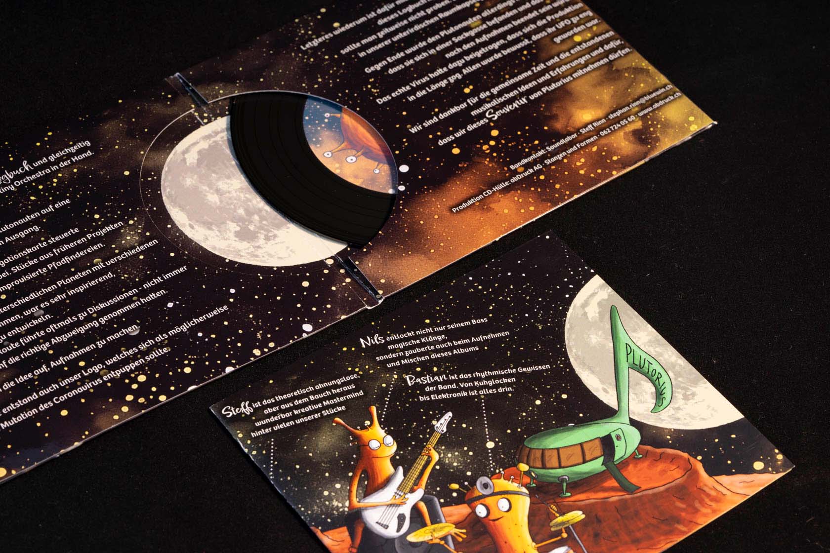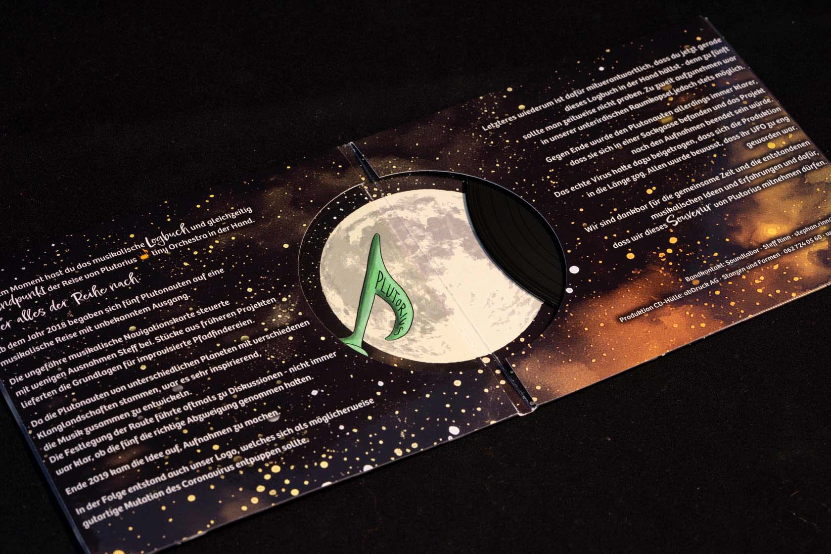 Plutorius macht Musik von einem anderen Planeten, weshalb ich sie mit der visuellen Gestaltung der CD auch dort hin geschickt habe