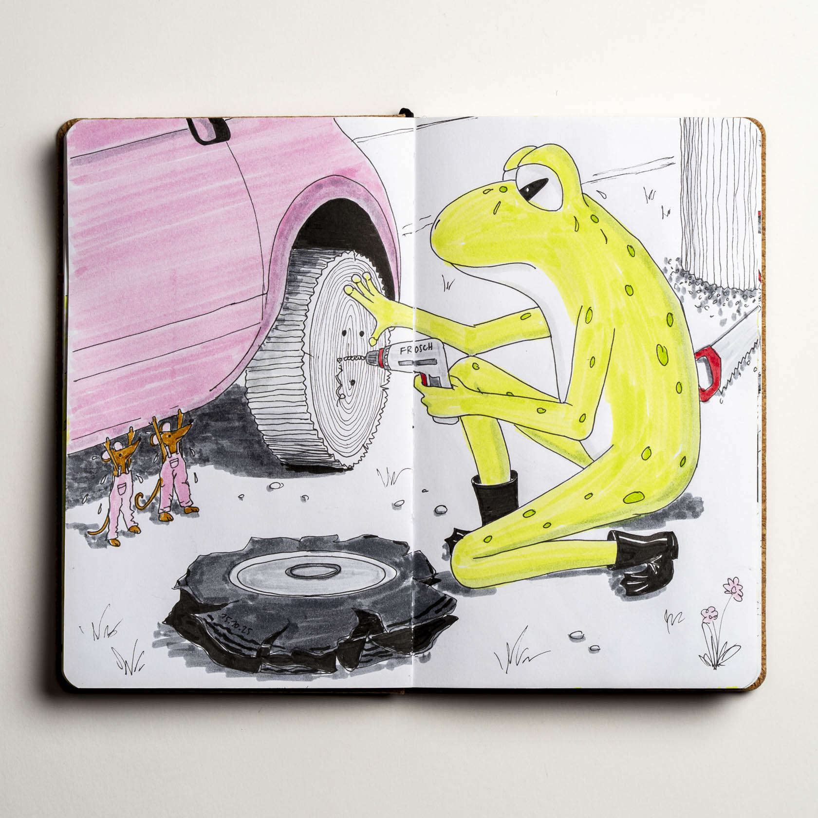 Angefangen hat alles mit der Idee, dem Topolino anstatt eines 'Trunks' (Kofferraum) einen 'Trunk' (Baumstamm) aufzuladen. Die Geschichte hat sich dann irgendwie verselbstständigt und für meine Patenkinder habe ich den Text dazu aufgeschrieben.